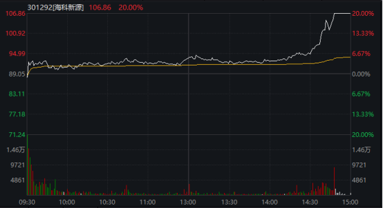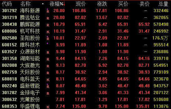 固态电池观点午后强势拉升,截至收盘,海科新源20%涨停,鹏辉能源、杭可科技涨超10%,圣阳股分涨停斩获4连板。